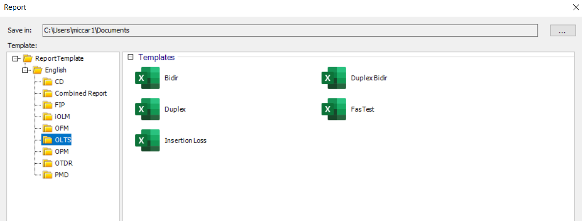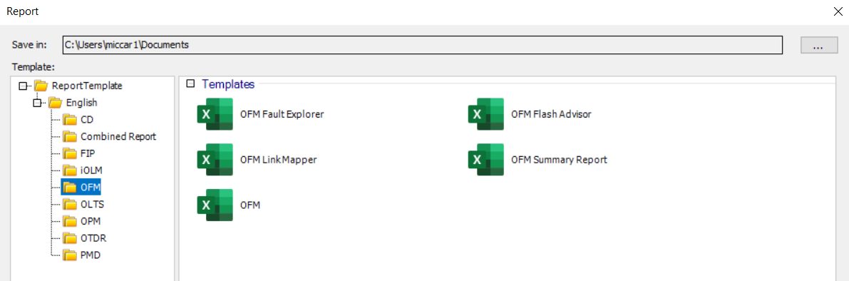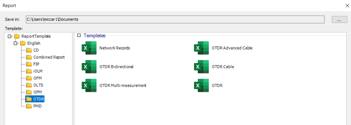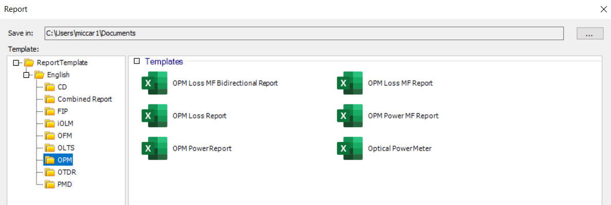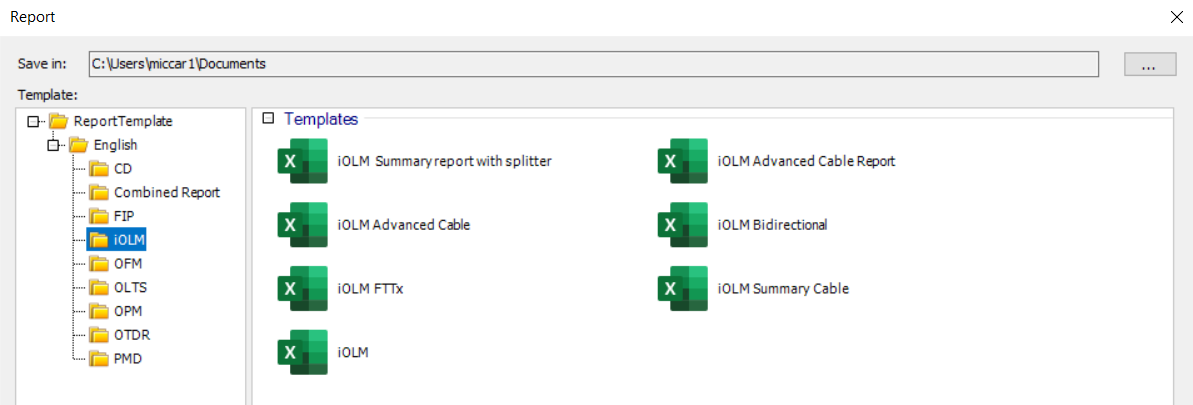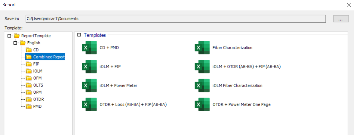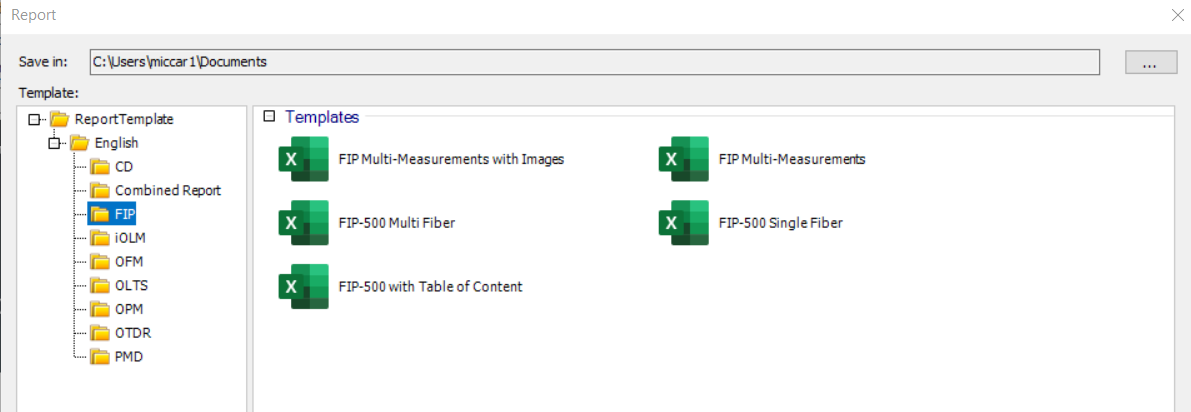 - Application reports - These are identical to the reports created when using the specific OTDR, iOLM, OLTS and FIP measurement applications.